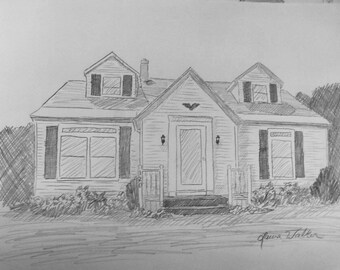 Pencil Drawing Sketch Of House Custom Art 9x12 Etsy
